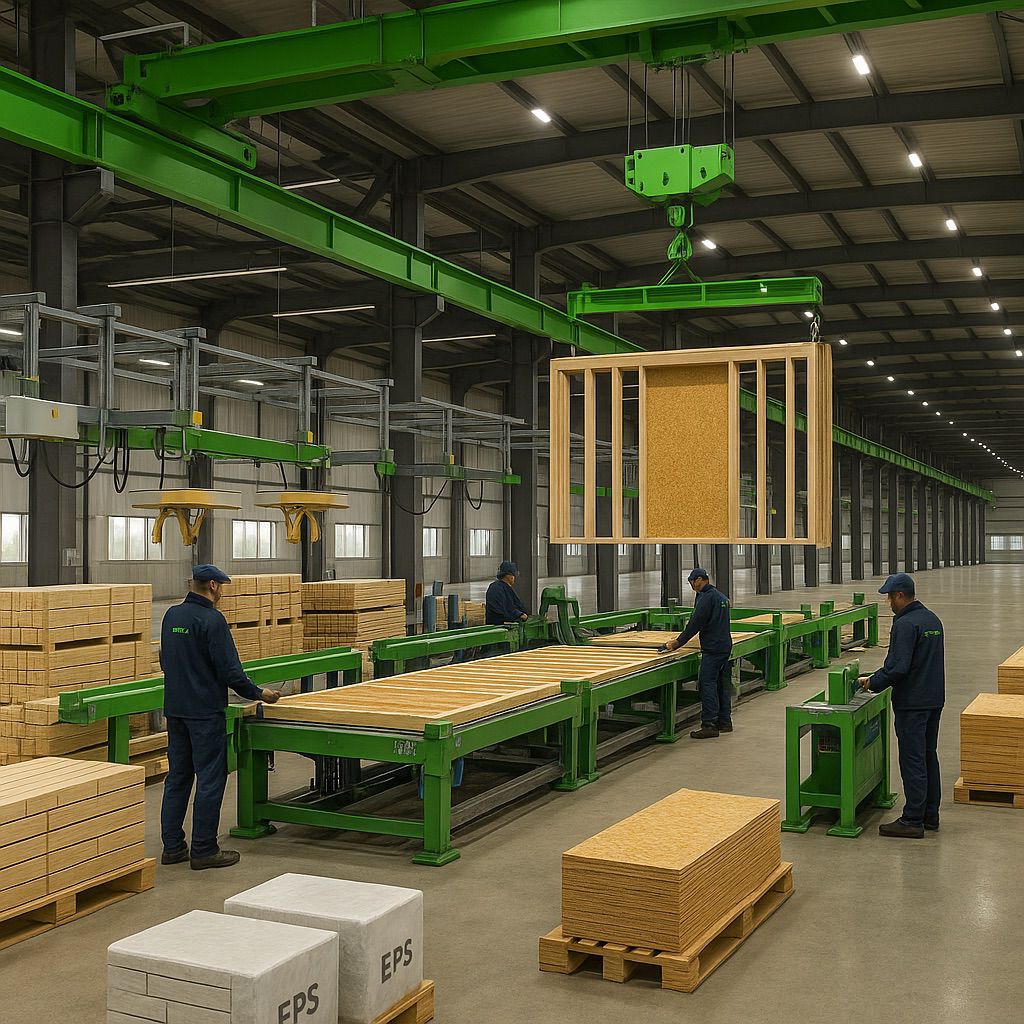 With this expansion, our production capacity now reaches 300 m² per shift, equivalent to two full family houses per day within a single production turn — allowing us to deliver faster, more efficiently, and at consistent European-level standards.